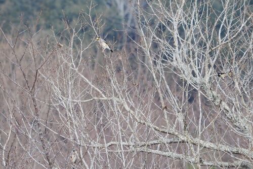 山里の野鳥のつづき~、イカルがいた。遠く高木にいたが、黄色いクチバシでばればれ~。山にいるのはイカル、海にいるのはイルカ、どちらも群れで行動しているよう。ところで、山にもいるが町中にもいて広く観られるシジュウカラ~。今回はクスノキでチョロ…