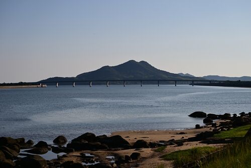 山口市の周防大橋が架かる椹野川から、防府市の一級河川佐波川河口へ移動新防府大橋と小浜山を望む景色、佐波川はこの先瀬戸内海へ注いでいるちょっと上流には防府市の名峰右田ヶ岳~佐波川河口の浅い汽水域を悠々と泳ぐ大もののスズキ?そして干潟には、な…