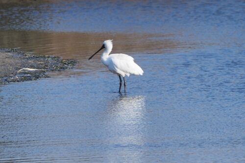 クロツラヘラサギは名前のとおり黒い面のヘラサギ飛翔する姿の美しさに魅了される~!ダイサギ(左)、クロツラヘラサギ(左から3番目)などの混群~左から2番目もクロツラかな右はヘラサギかも~クロツラヘラサギは絶滅危惧種サギではなくトキのなかまだそ…