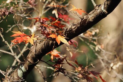 初冬の山口市の木戸公園、名残りの紅葉が迎えてくれた山茶花、山茶花咲いた道~♪ジュルルという鳴き声が聞こえて~!エナガがやって来た曇天で動きのあるショットはブレブレしかも、エナガは動きが激しいロートルたる老ジイが撮るには厳しいそれでもエナガ軍…